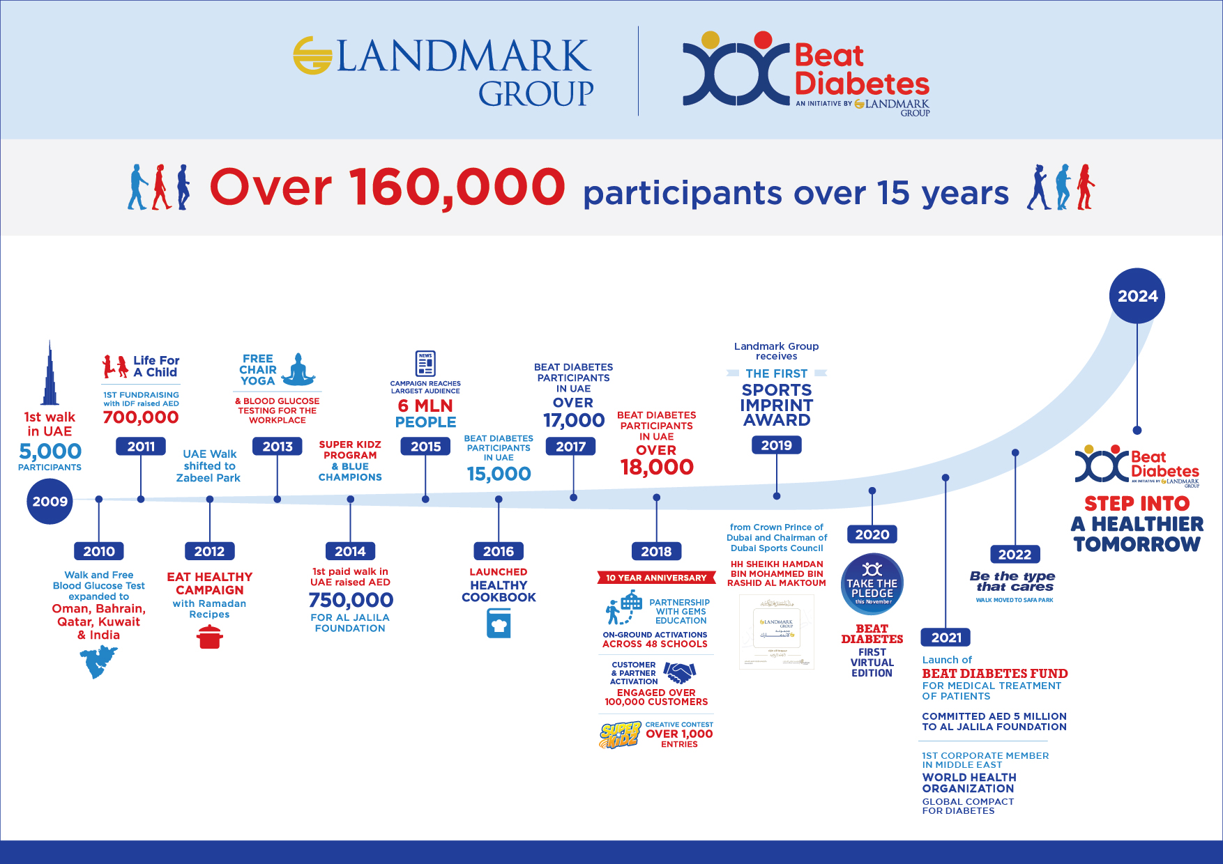 In January 2022, Landmark Group announced the launch of the Beat Diabetes Fund in partnership with Al Jalila Foundation to support patients struggling with diabetes related complications in the UAE.